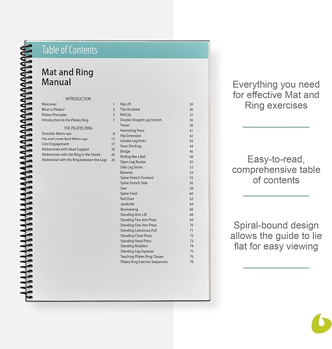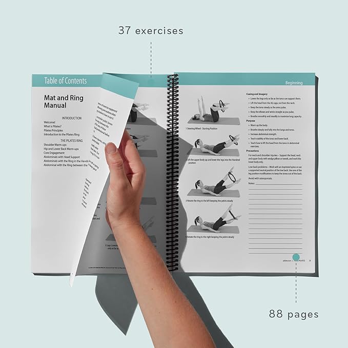 - PILATES EQUIPMENT GUIDE: Maximize your Pilates workout with our Mat and Ring Guide. This useful exercise guide features 88 pages with 37 exercises, full-color pictures, and step-by-step instructions so you can get the most from your floor workout.