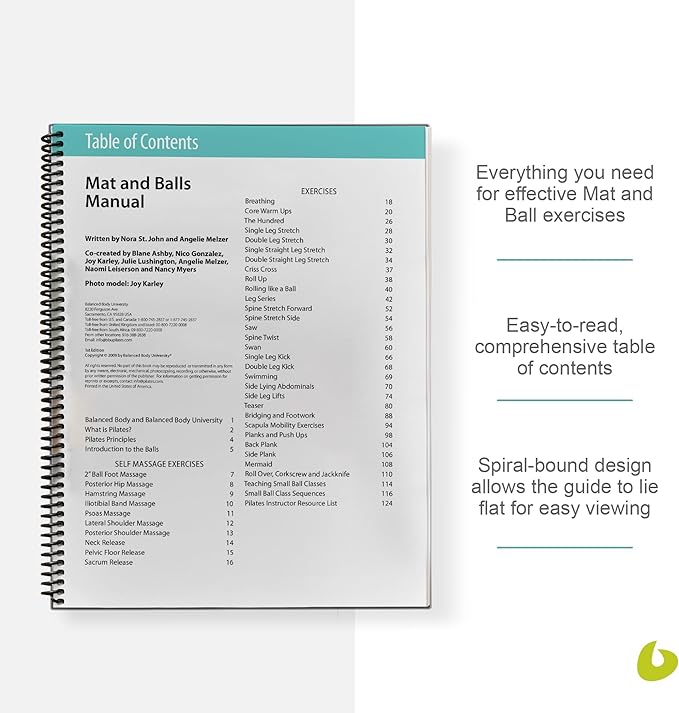 - PILATES TRAINING MANUAL: This dedicated guidebook will help you master the details of your Balanced Body Pilates equipment. It provides clear instructions on proper usage so you can safely harness the full potential of your mat and ball.