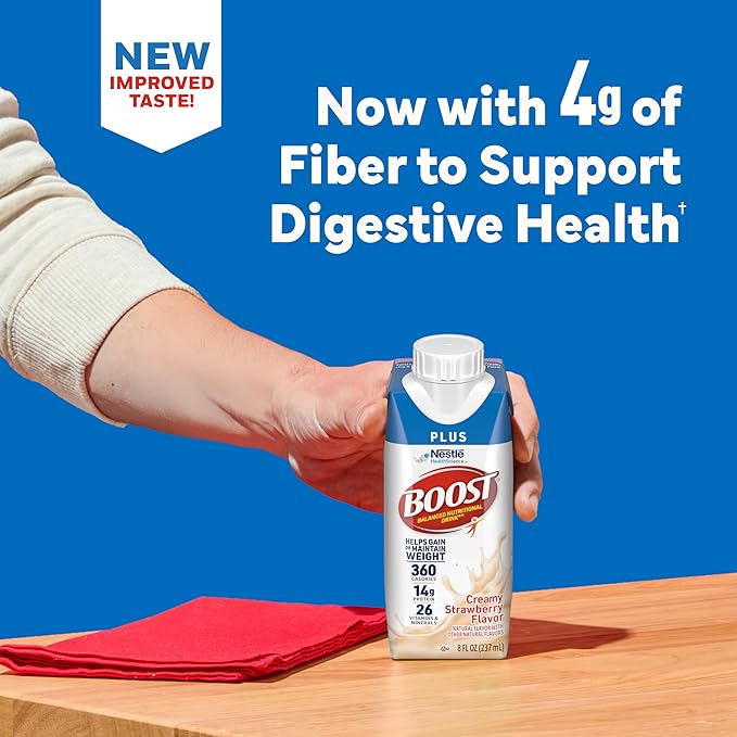 - Nutritional Support: BOOST Plus nutritional drinks give your body protein, vitamins, & calories to help support normal energy; Enhance your nutrition with great tasting drinks in chocolate, vanilla, & strawberry