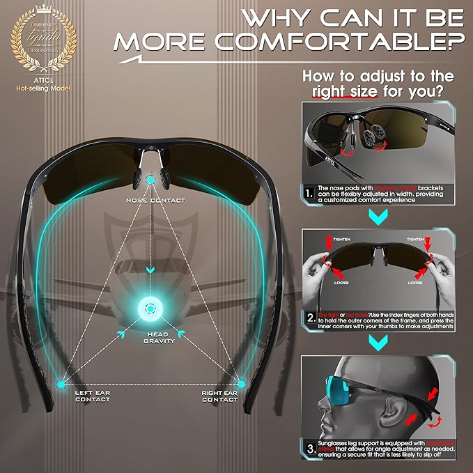 - PREMIUM GIFT PACKAGE: Each pair of ATTCL men’s sunglasses comes with zipper case, microfiber pouch, cleaning cloth, box, and polarization test card. Stylish men’s sunglasses polarized make perfect gifts for Father, Husband, Son, or Boyfriend. These versatile sunglasses men suit driving, fishing, and everyday adventures