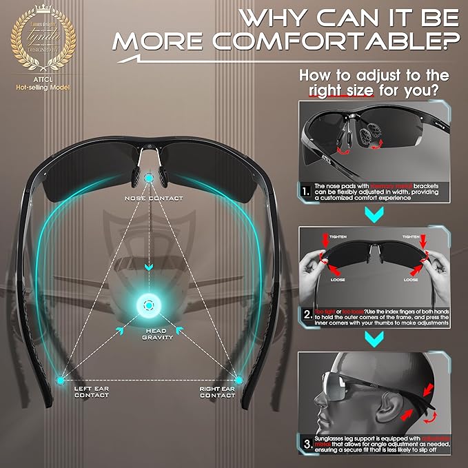• PREMIUM GIFT PACKAGE: Each pair of ATTCL men’s sunglasses comes with zipper case, microfiber pouch, cleaning cloth, box, and polarization test card. Stylish men’s sunglasses polarized make perfect gifts for Father, Husband, Son, or Boyfriend. These versatile sunglasses men suit driving, fishing, and everyday adventures