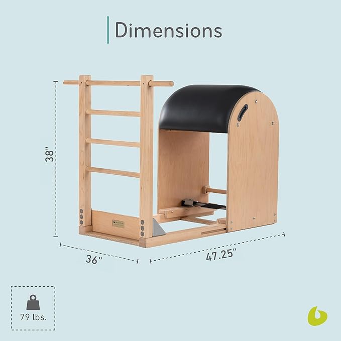 - MAXIMIZE YOUR PILATES WORKOUT: Our Ladder Barrel helps you reach new goals for fitness or physical therapy with a single piece of equipment. This device measures 47.25" L x 36" W x 38" H, making it a perfect addition to your home Pilates gym or studio.