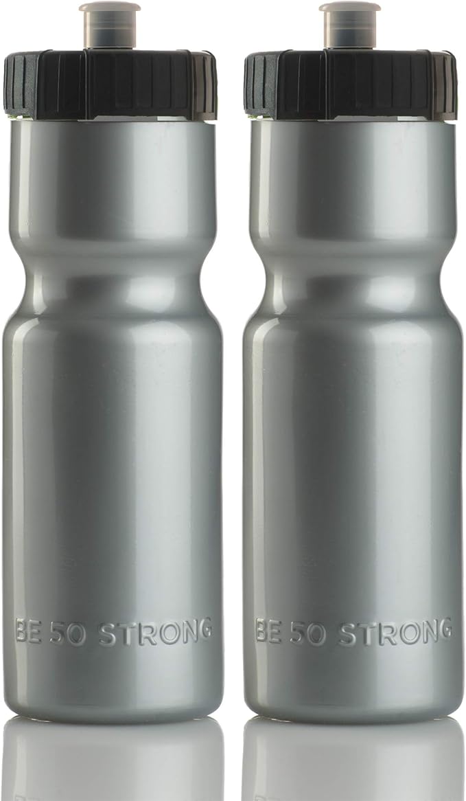 Bike Water Bottle Holder & Bottle Combo – 2-Pack 22 oz Sports Squeeze Bottles with Pull Top Cap & Easy-Install Bike Cage – Made in USA – 50 Strong Brand