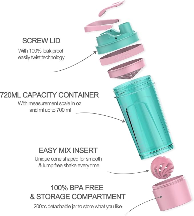 Artoid Mode Inspirational Fitness Workout Sports Protein Shaker Bottle 24-Ounce, Dual Mixing Technology with Shaker Balls & Mixing Grids Included, Twist and Lock Protein Box Storage Included