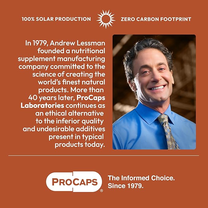 - Ethical & eco-friendly. zero carbon footprint - Uniquely committed to your health and the health of the planet, ProCapsβ facilities are 100% Solar Powered with a Zero Carbon Footprint and an LEED Gold green building status. All ProCaps bottles are made from 100% recyclable post-consumer resin. Plus, Andrew Lessman and ProCaps are the largest donor of prenatal vitamins in the world (over 2 billion capsules donated to date). ProCaps, the Informed Choice for Nutritional Supplements.