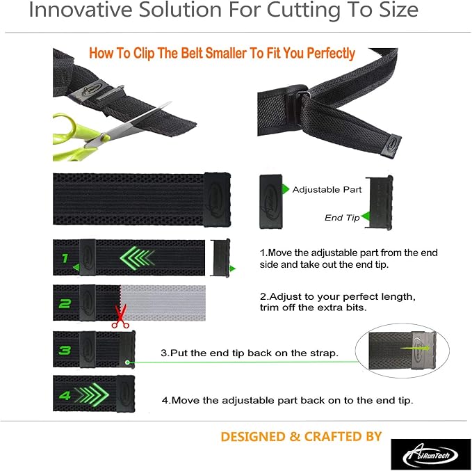 - ANTI-SLIP TECHNOLOGY FOR ULTIMATE FIT AND FRICTION-FREE COMFORT : AiRunTech Upgraded run belt hook&loop tape's in place nicely and doesn't loosen while running, give you the ultimate freedom of movement and comfort, personalized fit for hips from 18-51.2 inch (46cm-130cm), Designed to be worn low down on the hips, contoured grips ensure total comfort by removing friction, allows for a snug fit that stays in place without bouncing or chafing during use.