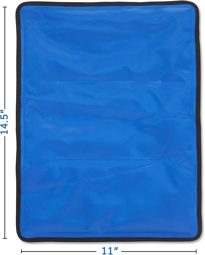 - COMPRESSION THERAPY β Sized at 11 x 14.5 Inches, our ice pack is perfect to alleviate pain and swelling using natural heat and cold compressions. Use it as a microwave heating pad or as cold packs for injuries, or to keep your lunch box cold.