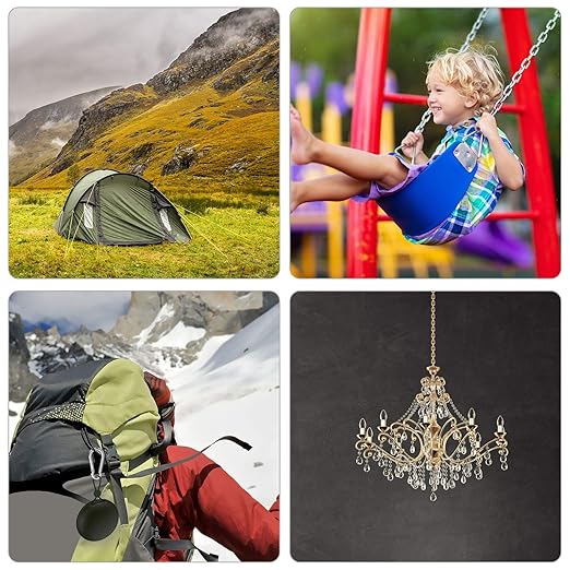 - 【Multipurpose Quick Link Clip】These are widely used for camping, hiking, diving, backpacking, fishing, boating, hanging cords, ropes, hoses, key chain, water bottles, backpack, handbag, key rings, camping gear, lights, dog leashes, pulley, rings, RV, rings, hardware, DIY accessories and indoor outdoor equipment gear