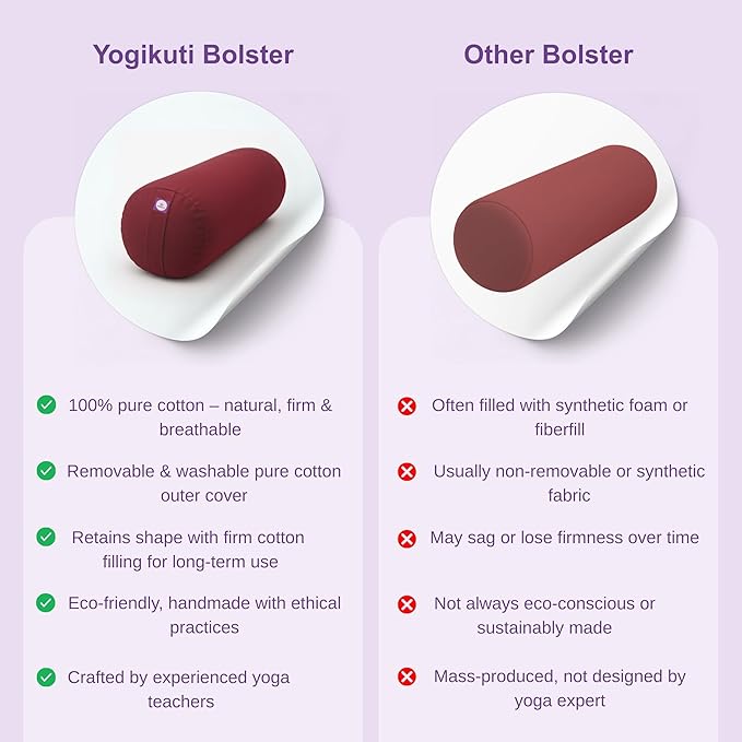 Yogikuti Iyengar Yoga Bolster for Restorative Yoga and Meditation – Lightweight Cotton Support Pillow with Handle for Easy Carry, Versatile for Pose Modification, Balance, Back Relief, and Relaxation