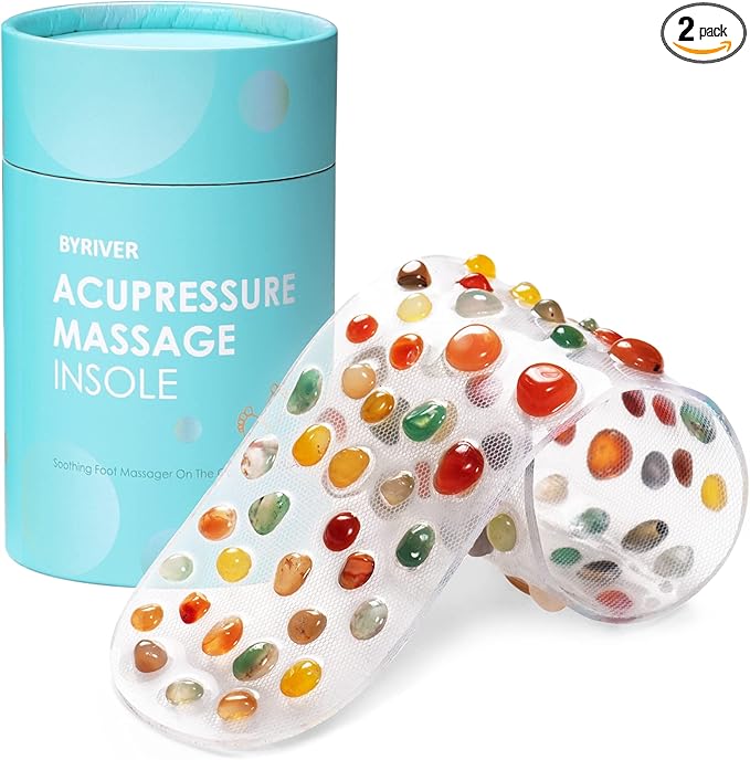BYRIVER Real Stone Massage Insole Shoes Insert for Men Women, Reflexology Foot Massage Mat, Plantar Fasciitis Massager, Stimulate Pressure Points, Relieve Feet Tension, Gift for Mom Dad (45)