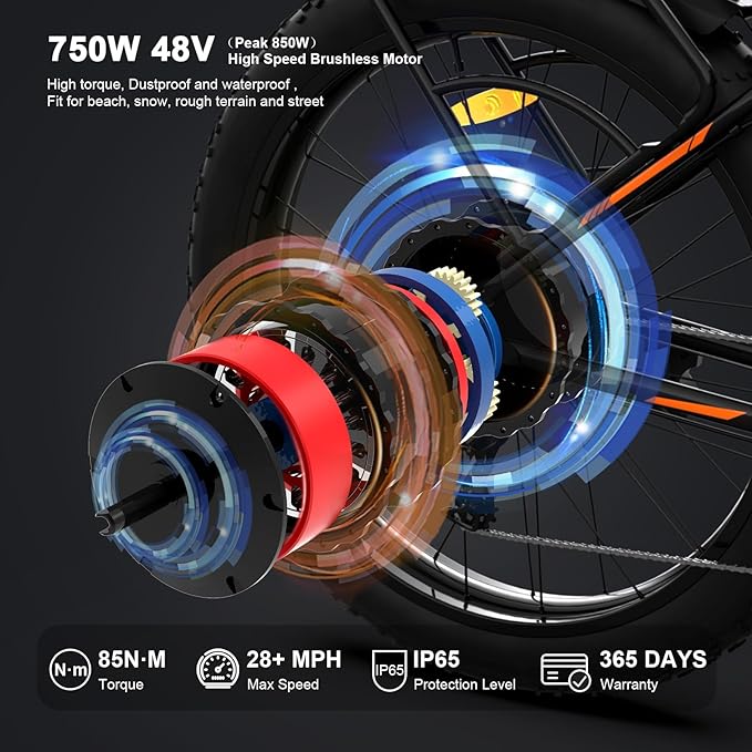 - 【750W Powerful Brushless Motor】 750W (Peak 1000W) high-speed brushless motor provides e-bike max speed up to 28 mph. 26"x4" wearproof fat tires fit for multiple terrains, excellent grip and skid resistance. 85N·M of torque, precise and sensitive SHIMANO-7 speed shift gear, suitable for riding on beach, snow, rough terrain and street.