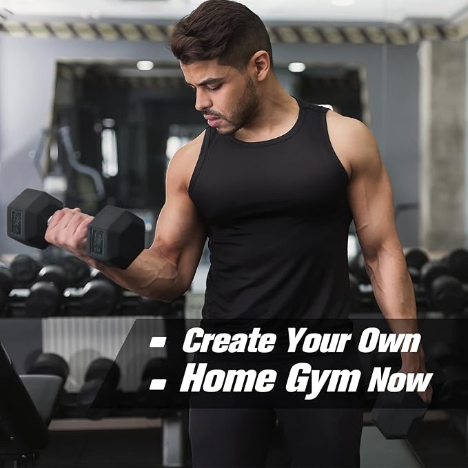 • Durable: The solid cast-iron core of our weight dumbbells provides reliable strength less likely to bend or break after intensive use over time. Durable and odor-free rubber coating reduces fall damage and protects your floor. Ergnomic and Contoured handle, with chrome finish, provides non-slip grip and security. Hexagon shaped ends keep the dumbbell weights from rolling away, easier to store.
