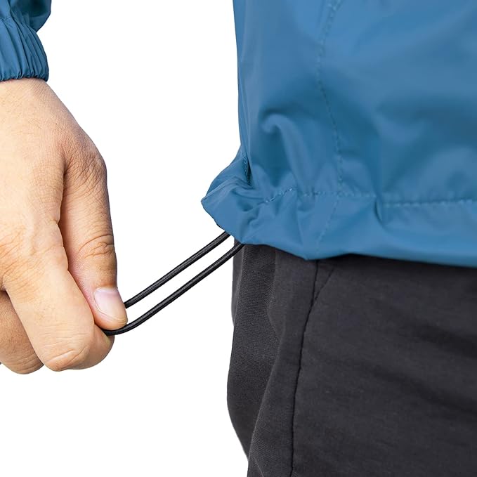 • ?�Unique Design?‘Lightweight lite rain jacket elastic cuffs prevent the rain drops to the cuffs; Adjustable drawcord hood to prevent yourself from being wet; The hem contains elastic rope for warmth and keep you dry. Suitable for casual wear, outdoor sports, outdoor work, traveling, cycling, hiking, climbing, fishing, camping, hunting.