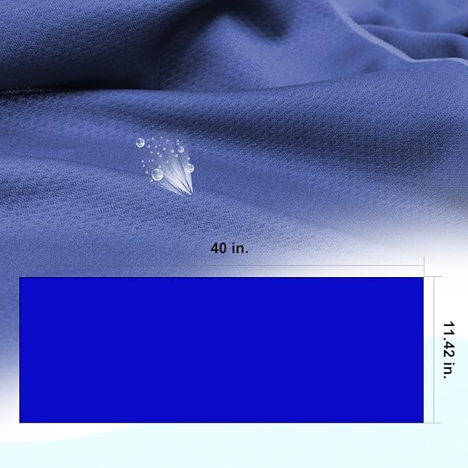 - MULTIPURPOSE SPORTS TOWEL: You may use your cooling neck wraps in many different ways! The 40''x12'' size gives you the chance to make it the perfect neck cooler, ice cooling scarf, instant heat relief bandana and cold headband. Whether you are at work, at the beach, at the gym, doing pilates at home or at camping, this cooling towel is the summer essential accessory for you.