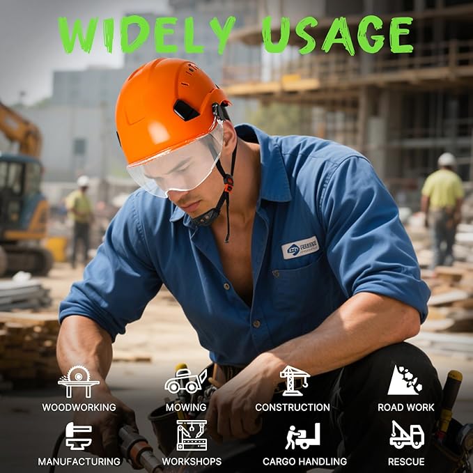 - Applicable Environment:Safety helmet with the clear visor,Suitable for workwear such as indoor or outdoor construction , industrial ,height etc
