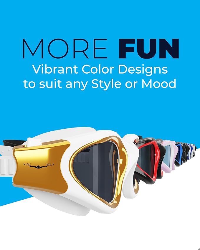 • βœ“ SUPERIOR DESIGN ~ Unlike other single strap swimming goggles, our split Y-shaped strap design has no trouble in ensuring a fixed position of the goggles on the head even during the most vigorous swimming. Adjusting the size of the strap is easier, faster and can be done even during swimming with our one-click buckle system