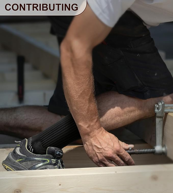 - COMPRESSION -- With proper stitching density, Its particular material composistion of yarns mixed with spandex provides these crew socks proper elasticity and good compression to feet, which can promot blood flow for a more comfortable experience;