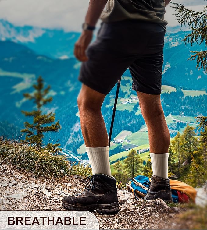 - COMPRESSION -- With proper stitching density, Its particular material composistion of yarns mixed with spandex provides these crew socks proper elasticity and good compression to feet, which can promot blood flow for a more comfortable experience;