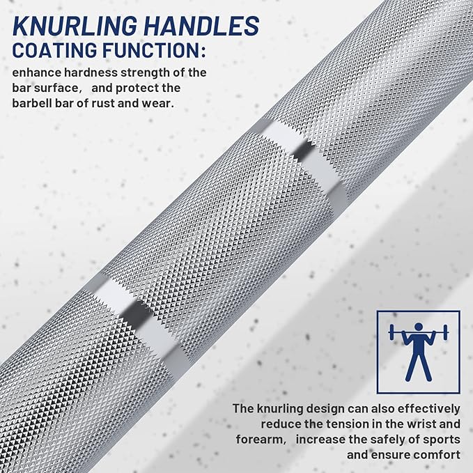 - Enhanced Grip with Precision Knurling: Designed with a 28mm shaft and 1.2mm medium-depth knurling, this barbell offers superior grip and wrist comfort. Whether you're lifting for strength, powerlifting, or general fitness, the knurling reduces slippage and strainβideal for safe and consistent lifts