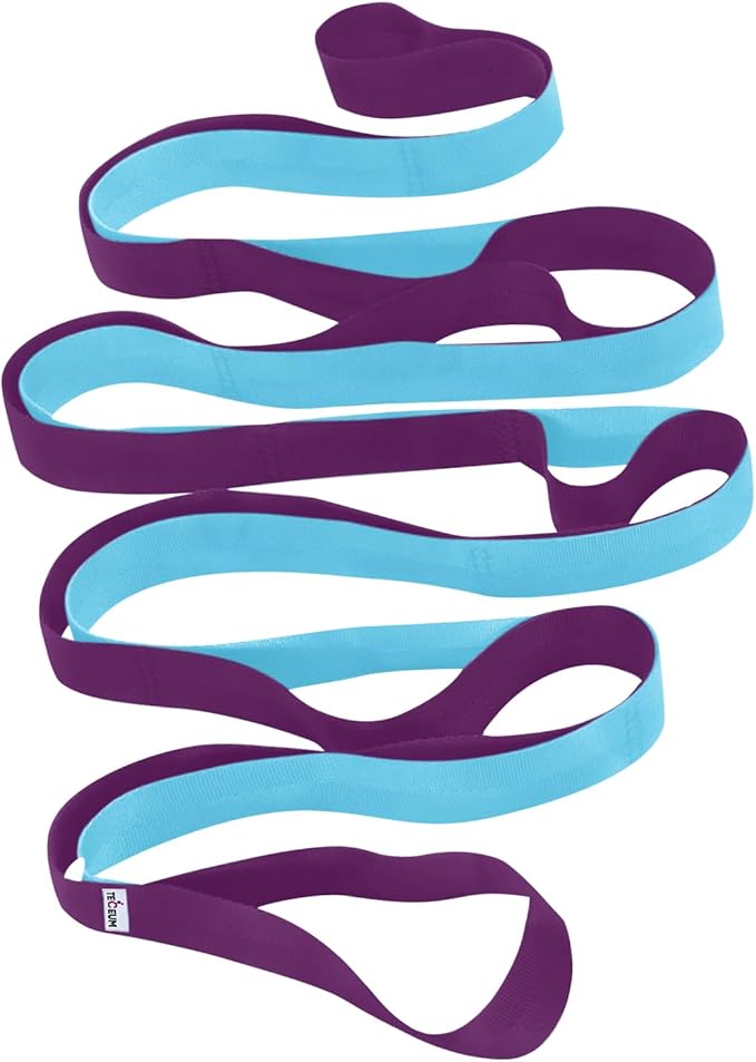 - STRETCHING STRAP. Color: PURPLE BLUE. Material: POLYCOTTON. Width: 1.5 IN. Length: 79 IN. 10 Loops. Non-elastic. Superior Non-slip Grip.