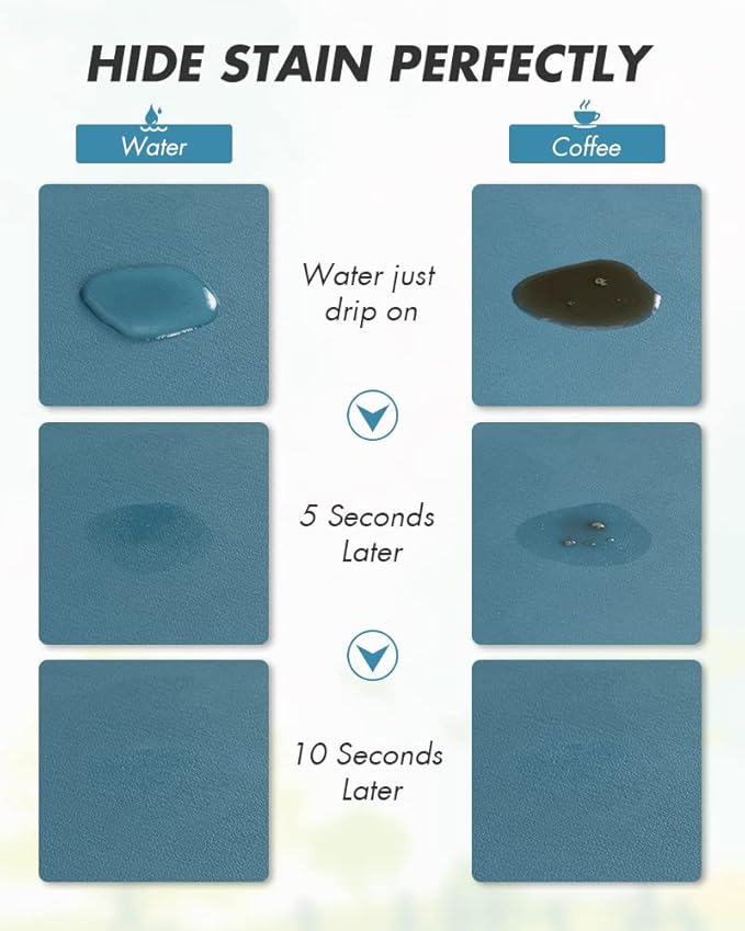 - NO WATER MARKS: 0.2" thick special PU surface hide coffee stains, milk stains and any other dark messy stains well. Say goodbye to traditional coffee mat full of stains