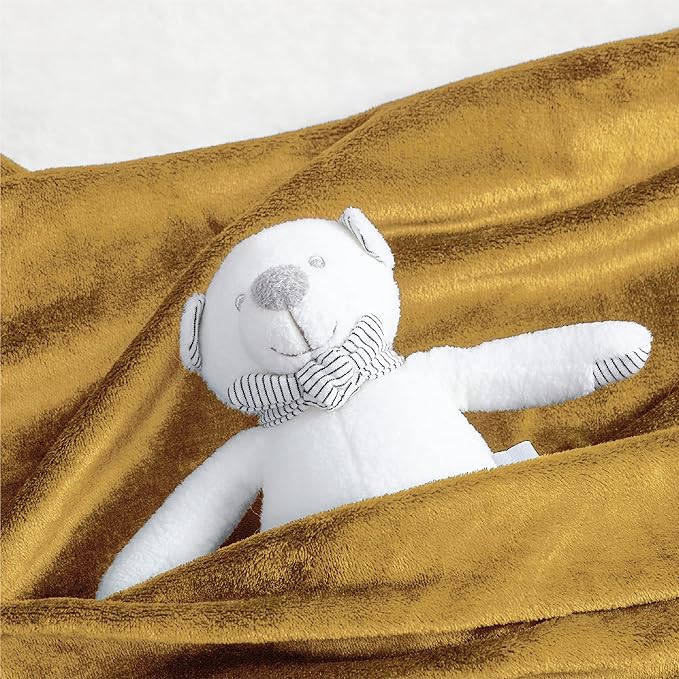Bedsure Bedding Fleece Blanket for Girls and Boys - Soft Cozy Cute Small Throw Blankets for Travel, 43x55 Inches, Gold