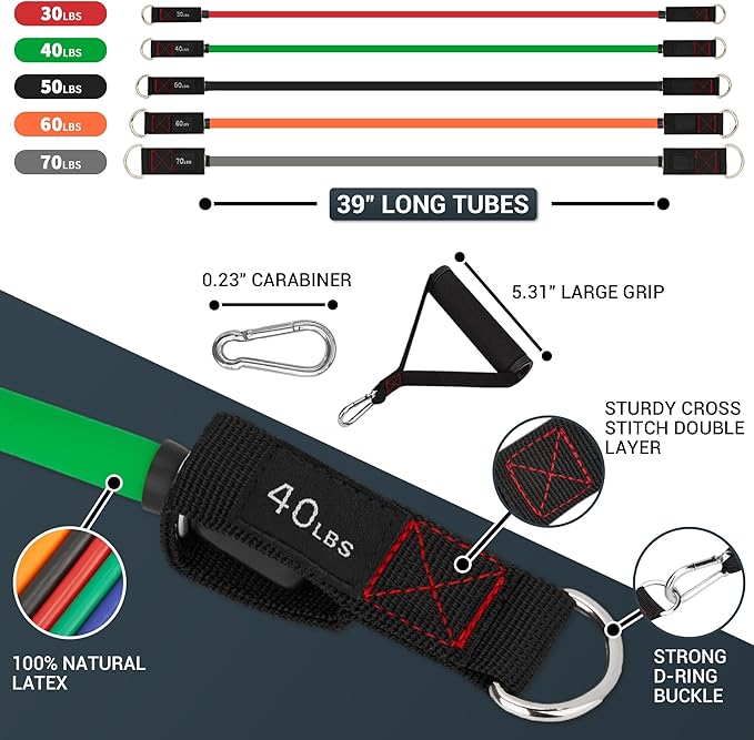 TheFitLife Resistance Bands with Handles - Designed for American Body Types, Exercise Workout Tubes for Men, Women, Includes Large Handles, Ankle Straps, Door Anchor, Fitness Levels