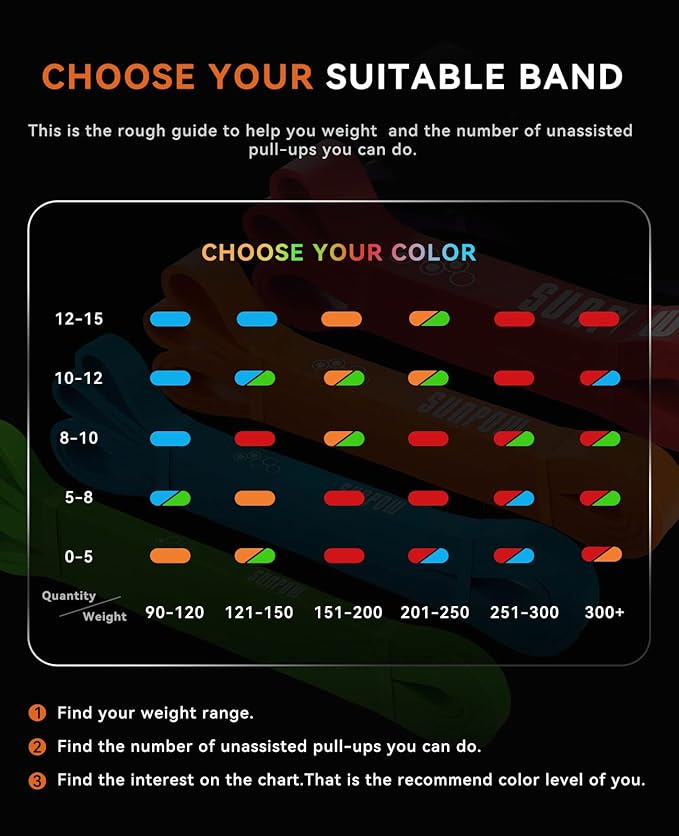 SUNPOW Pull Up Assistance Bands - Set of 5 Resistance Heavy Duty Workout Exercise Stretch Fitness Bands Assist Set for Body, Instruction Guide and Carry Bag Included