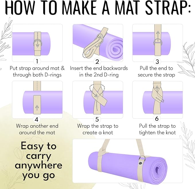 • STRONG & COMFY: Our yoga belts are made from high-quality cotton blend with eco-friendly yarn dyeing. It is non-elastic, durable and easy-to-clean material. The thick tight weave yet delicate soft-to-skin texture of the belt ensures both durability when carrying the mat and comfort during and comfort during practice. The D-ring loops are made from sturdy corrosion-resistant stainless steel and holds the yoga strap.