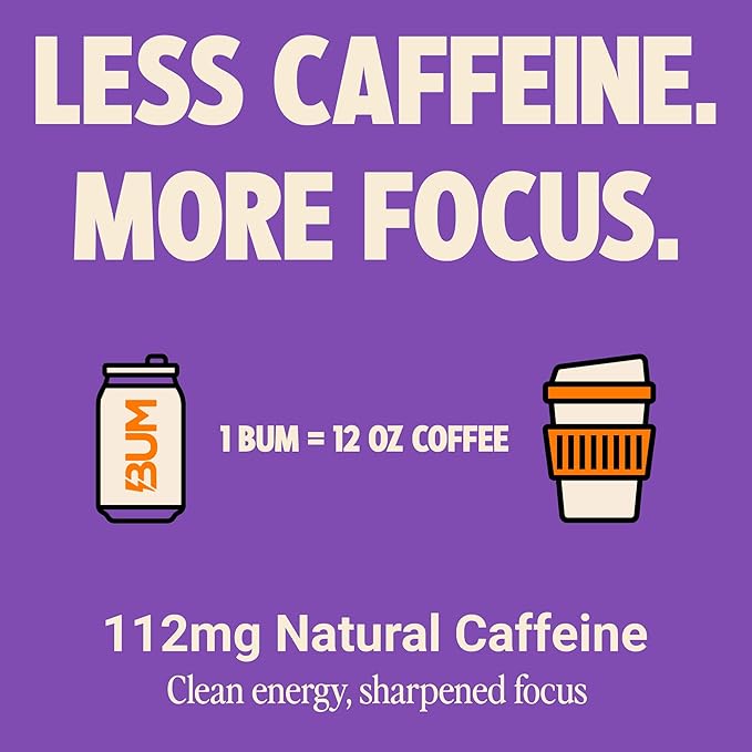 - BUM Sugar-Free Energy Drink - Lightly Carbonated & No Artificial Colors, Natural Caffeine & Citicoline for Energy & Focus, Brain Boost & Workout Sports Beverage - 12 oz, Pack of 12