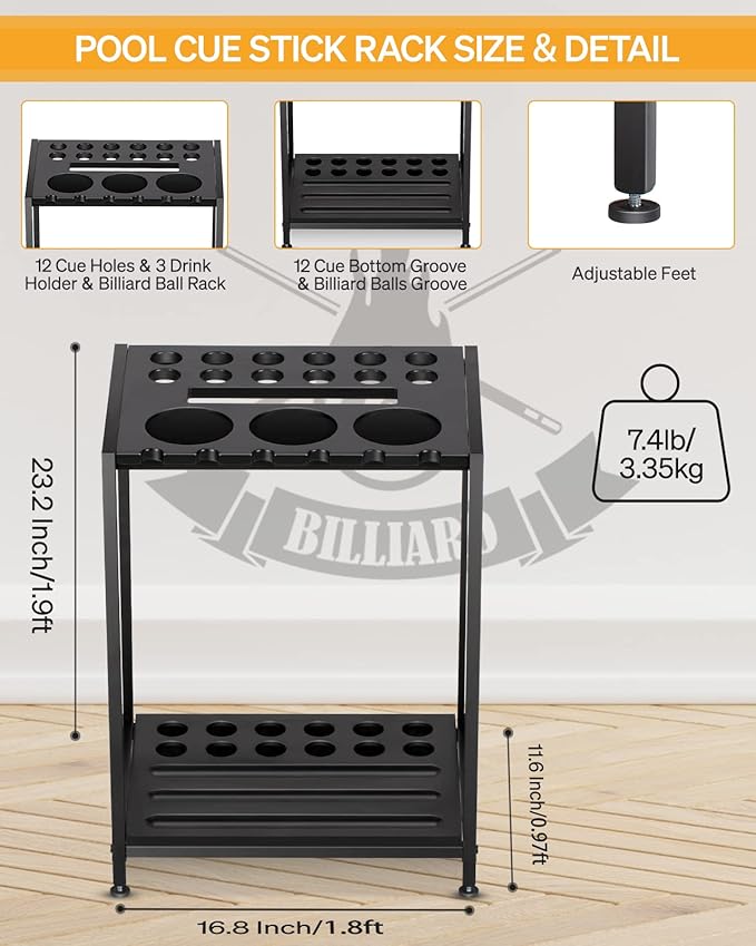 - Special Feature : 12 CUES STICK HOLDER, HOLD BILLIARD BALL RACK, PINGPOND PAT HOLDER , PIONGPONG BALL STORAGE, POOL TABLE ACCESSORIES ORGANIZER, SIX POOL STICK HOLDER 12 CUES STICK HOLDER, HOLD BILLIARD BALL RACK, PINGPOND PAT HOLDER , PIONGPONG BALL STORAGE, POOL TABLE ACCESSORIES ORGANIZER, SIX POOL STICK HOLDER