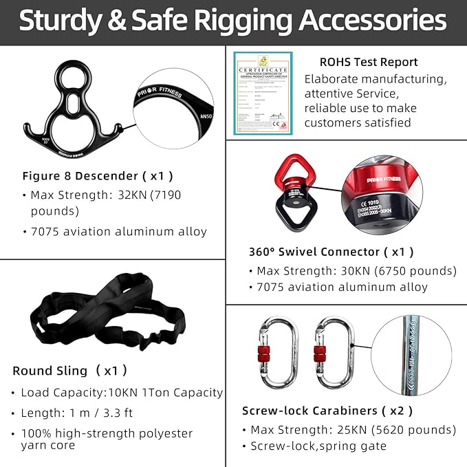- Easy to set up this starter set includes everything you need to get started with aerial silks,including a set of sturdy rigging equipment and clear instructions on how to set it up. Your set will include: 2 x daisy chains,1 x Swivel, and 2 x Steel Screw-lock Carabiners,1x instruction Guide.