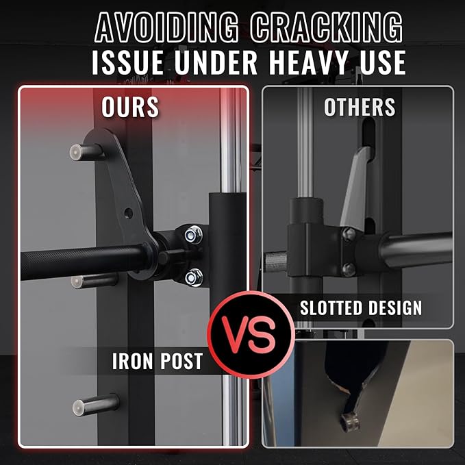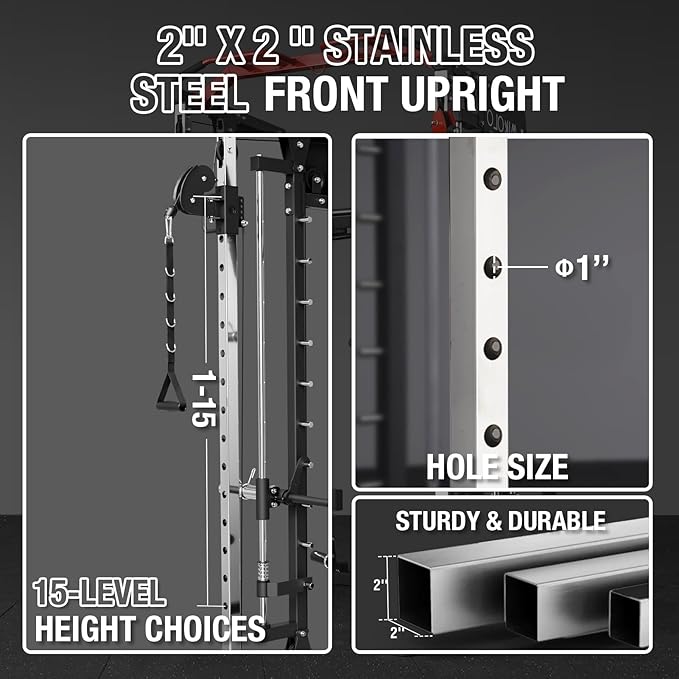 - [Build Your Dream Home Gym] One machine can meet your various needs. M4 is designed for trainers. It is combines power cage, smith machine, cable crossover machine, cable station, and pull-up station. Lets you do unlimited exercises in a limited space! Pre-reserved holes for resistance band, you can do more weight training and resistance exercise. Such as resistance (pull-ups, barbell squats, shoulder presses, cable chest fly, etc.)