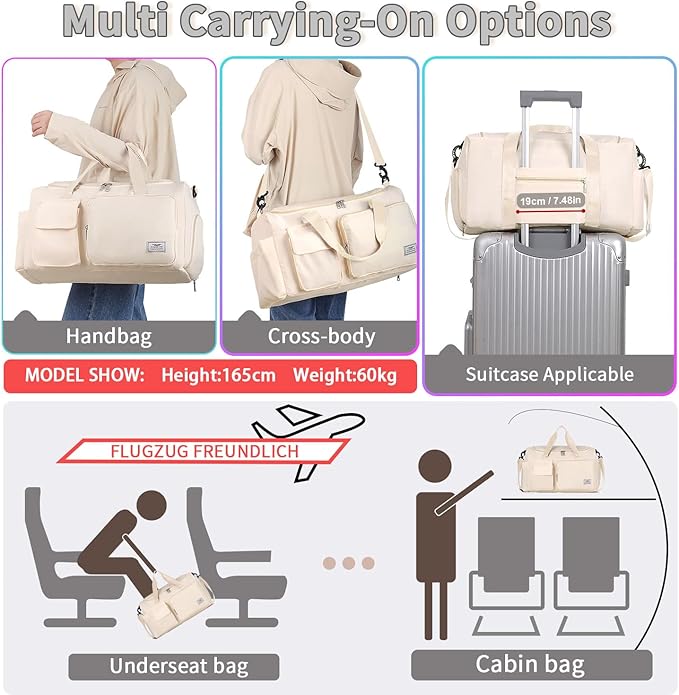 - Airplane-friendly Travel Bag: The size of this travel bag is 18''Γ11''Γ11'', ideal as a carry on bag. With additional adjustable shoulder strap & integrated trolley sleeve, the tote bag can be carried with you everywhere, making your travel a breeze