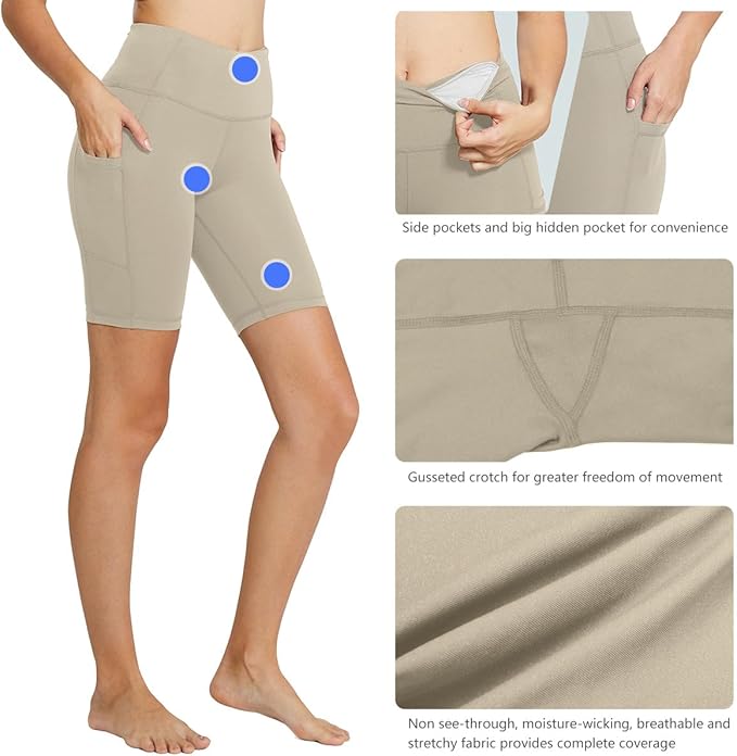 baleaf Women's 8"/ 5"/ 3" Biker Shorts High Waist Yoga Workout Gym Running Volleyball Spandex Shorts with Pockets