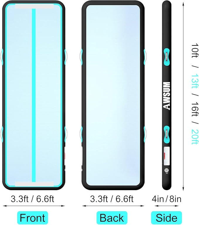 AWSUM Inflatable Air Gymnastics Mat 10ft/13ft/16ft/20ft/23ft Training mat 4/8 inches Thick tumbling mat with Electric Pump for Home/Gym/Outdoor