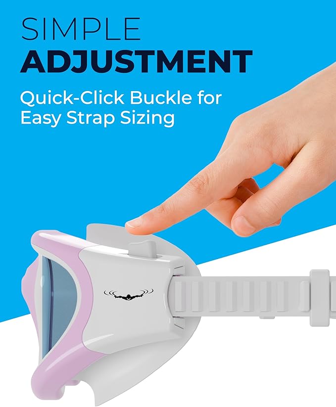 - [[ SUPERIOR DESIGN ]] - Unlike other single strap swimming goggles, our split Y-shaped strap design has no trouble in ensuring a fixed position of the goggles on the head even during the most vigorous swimming. Adjusting the size of the strap is easier, faster and can be done even during swimming with our one-click buckle system