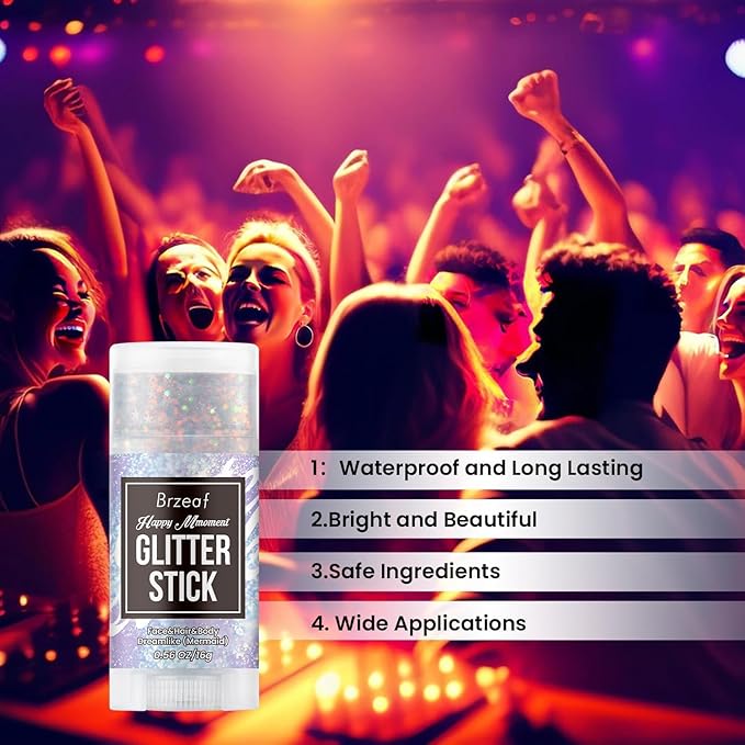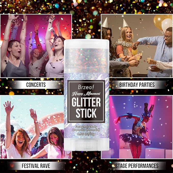 - 【Wide Range of Applications】Our glitter stick makeup can be used in many applications. For example, music festivals, concerts, birthday parties, stage performances, holiday events and various other occasions. You can in use mermaid glitter cream to decorate your face, hair, body, eye shadow and other various parts. Let your makeup shine all over, let the pearlescent illusion hold your beauty.