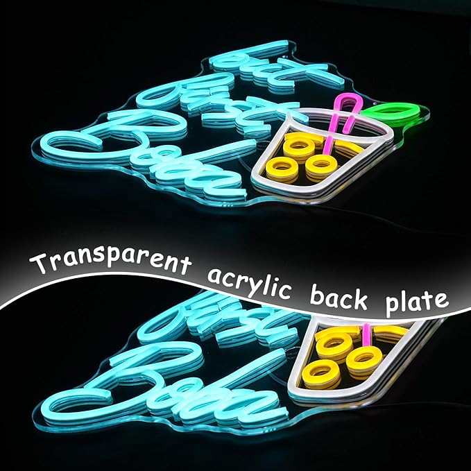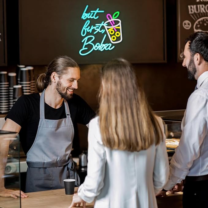 - 【But first boba Letter LED SIGN】"But first boba"milk tea Neon lights gives a relaxed vibe and Modern Style,ice blue neon sign is much brighter than the others,Great for milk tea shop, dorm,bedroom,office,DIY bar