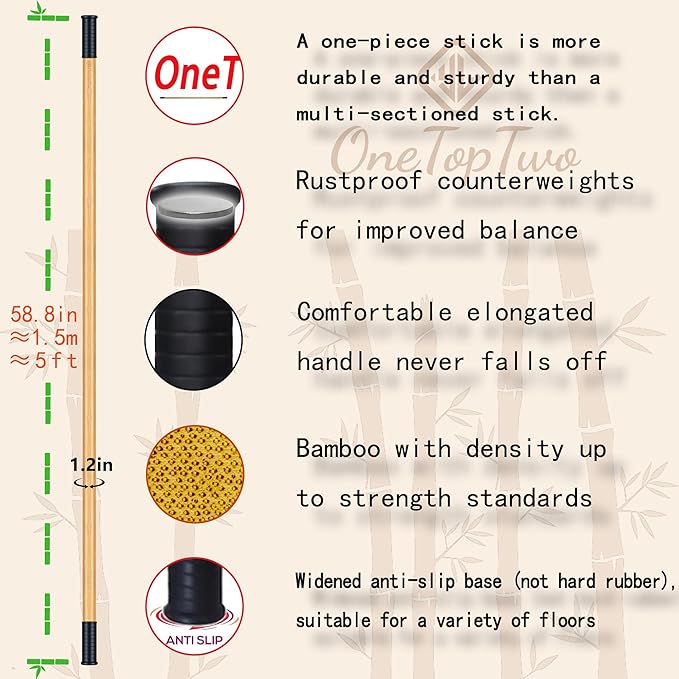 5ft Yoga Stick from Natural Bamboo with Non-Slip Handle-Stretching Stick for Mobility, Flexibility,Exercise,Workout, Physical Therapy,Pilates,Balance Fitness-Access Online Video Guide Without Any Info