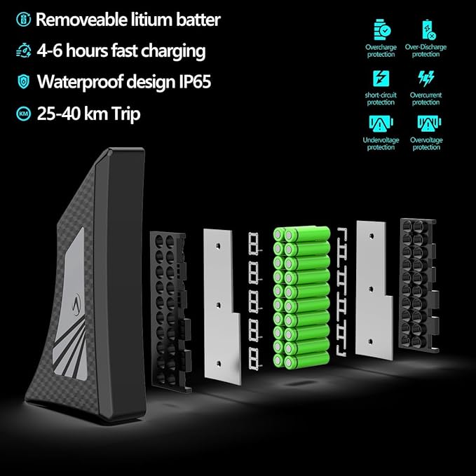 - Ebike with 48V 15Ah removable large capacity lithium battery, 4-6 hours fast charging. Key will firmly lock the battery to the frame, don't worry it easily dropped or being stolen. Battery is removable, waterproof and convenient to bring home or office for charging.