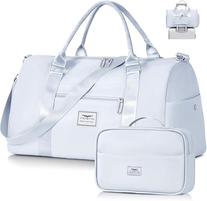 FIORETTO Womens Gym Tote Duffle Bag with Toiletry Bag, Sports Duffel Overnight Hospital Workout Carry on Bag for Girls with Wet Pocket & Shoe Compartment, Ideal for Travel, Swimming, Dance Grey