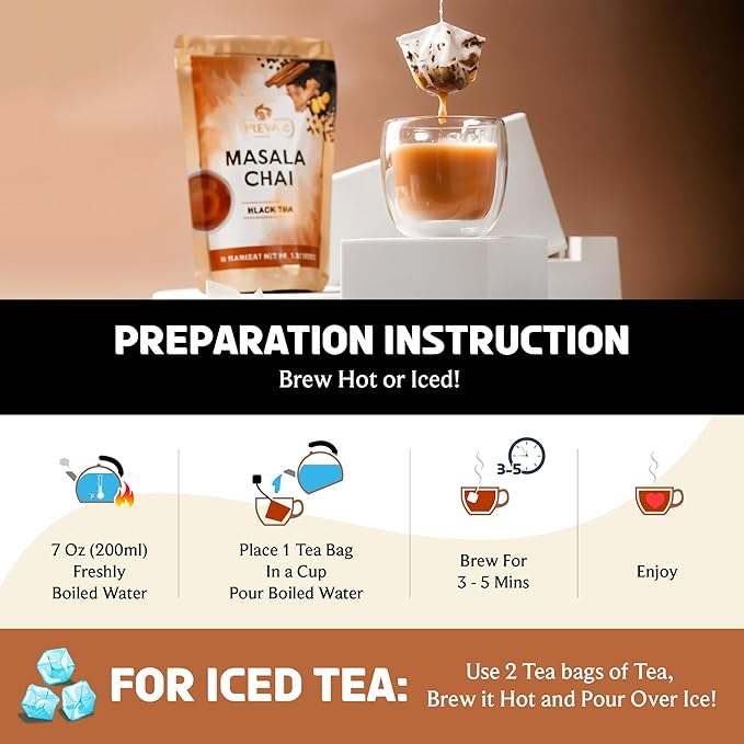 BREWIX, Masala Chai Tea Bags (50 Pyramid Tea Bags) Strong, Robust & Spicy - Pure Ingredients | Black Tea, Cinnamon, Ginger, Black Pepper, Cardamom & Cloves, Packed in Resealable Ziplock Pouch