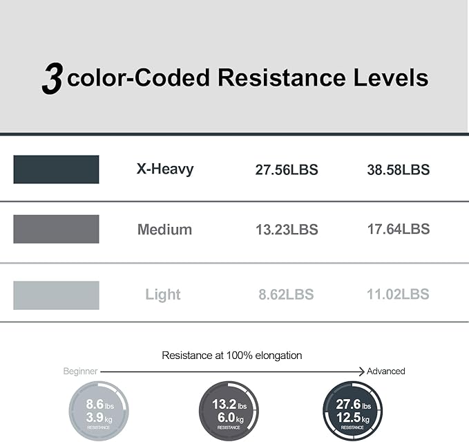 - 【Premium Quality】 3 Exercise Bands with Color-coded Resistance Levels (Light, Medium, X-Heavy), Made from Upgraded Rubber Material, Not Sticky Material, Eco-Friendly, Non-Toxic, Latex-Free, People with Latex Allergie can also Use It Safely.