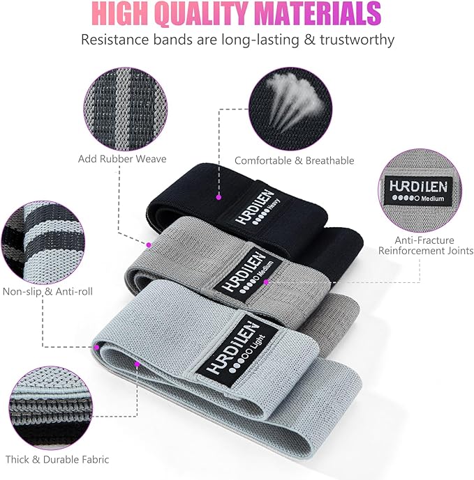 - Three Resistance Levels - The exercise bands resistance offer three resistance levels: light (light grey, 15-30 lbs.), medium (grey, 30-50 lbs.) and heavy (black, 50-70 lbs.), all the same size (3.15"x13.8"), ensuring that all workout goals and desired intensity levels are met, catering to the workout needs of beginners and advanced exercisers alike. The workout bands make it easy to create a personalized workout program to help you progress on your fitness journey.