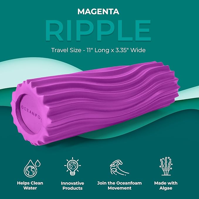 Oceanfoam Ripple Travel Foam Roller (11" x 3.35") Firm Mini Foam Roller for Physical Therapy, Deep Tissue Massage, Back Pain - High Density, Ergonomic Wave Textured - Yoga, Pilates, Exercise (Magenta)