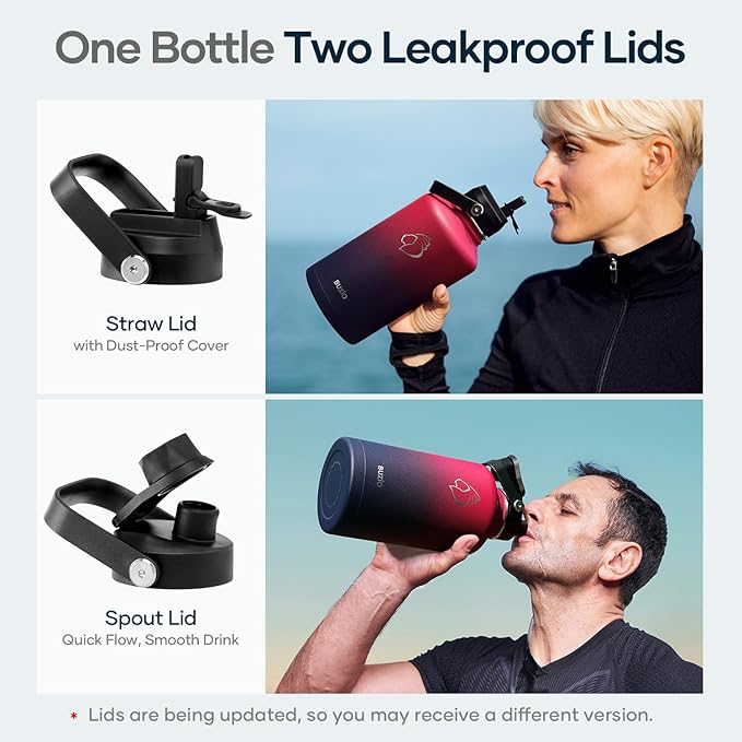 - What You Get: Included with a BUZIO insulated water bottle, a straw lid (2 straws), a flex cap, and a cleaning brush !