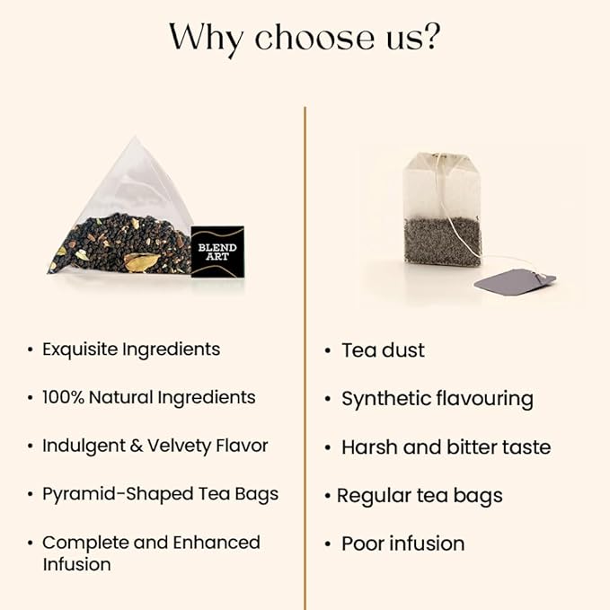 - Infused with Real Spices, Never Flavourings - We believe in authenticity. Our blend uses only whole spices — cardamom, ginger, cinnamon, clove, and black pepper — sun-dried, crushed, and blended in their purest form. No artificial flavors, no shortcuts — just the way chai was meant to be