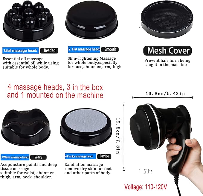 - 2.The electric massagers is easy to use and has only one rotary switch, allowing you to freely control the vibration intensity to adapt to the needed for different body parts.The lipo roller lymphatic massager serves as a targeted massage therapy and essential tool for body sculpting, not only aiding in muscle recovery and promoting the absorption of essential oils for body shaping, but also helping enhance skin radiance and elasticity. It is a thoughtful companion for home and travel.