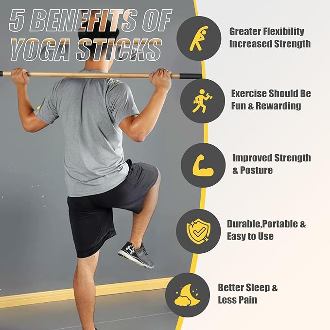 - Improve Thoracic Spine Flexibility & Balance - our brand gym stick can release stiff back, alleviate body pain, and improve physical health. Help you adjust your posture, improve breathing, stretching, and flexibility. Yoga sticks are also effective in learning yoga